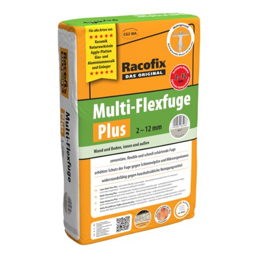 Zur Verfugung von schwach saugenden Fliesen und Platten aus Steinzeug und Feinsteinzeug, Beton- und Naturwerkstein, Aggloplatten, Glas- und Aluminiummosaik und Einleger. Bei der Verfugung saugender Keramik (z. B. Steingut) mit Racofix® Multi-Flexfuge Plus muss der Belag zwingend vorgenässt werden. Für innen und außen, Wand und Boden. Für Wohnräume, Feucht- und Nassräume sowie auf Balkonen und Terrassen.Kontakt zum Hersteller
