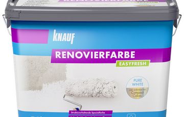 Knauf EASYFRESH ist eine mineralische, strukturerhaltende Renovierfarbe, die Sie universell in Ihren Wohnbereichen einsetzen können. Die weiße Spezialfarbe eignet sich hervorragend zum Streichen von strukturierten und glatten Untergründen. Dazu…