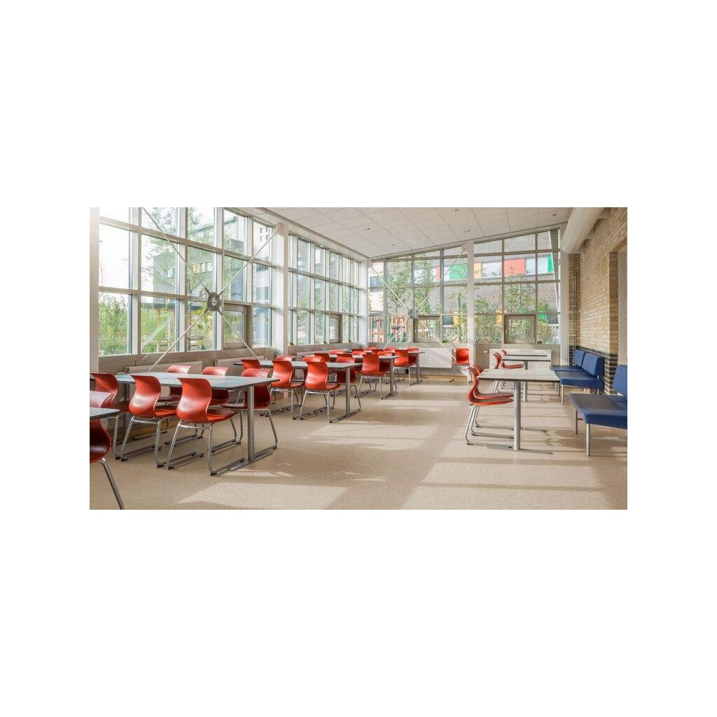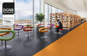 PVC-freier Verbund-Bahnenbelag mit Akustikrücken in dezentem Chipdesign