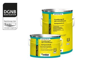 Dichte Untergründe (z.B. Beton, XPS- oder EPS-Flächen) erfordern eine Vorbehandlung mit der mineralischen Haftbrücke weber.dur 101 als