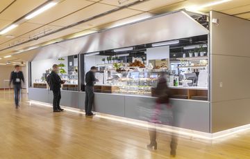 Horizontalfaltladen für den Einbau an Fassaden und innen als mobile Raumteiler.