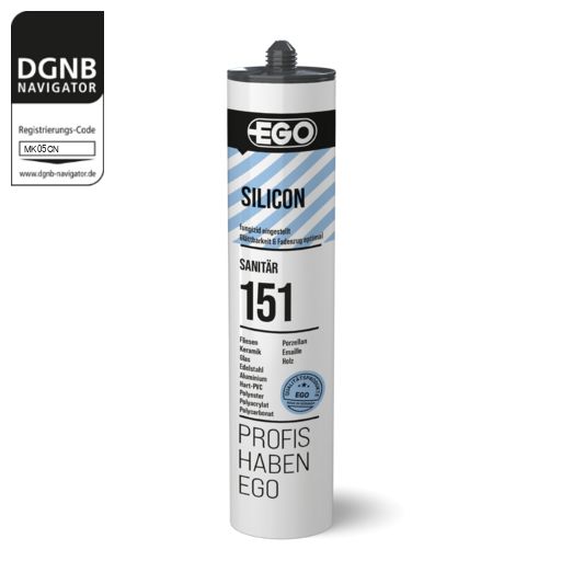 EGOSILICON 151 SANITÄRPROFI ist ein außerordentlich hochwertiger Einkomponenten-Silicon-Dichtstoff mit optimierter Verarbeitungsqualität, der über Reaktion mit Luftfeuchtigkeit zu einem elastischen, abriebfesten Endprodukt vulkanisiert. EGOSILICON 151 ist fungizid eingestellt und wasserfest, UV-, witterungs-, alterungs- und chemikalienbeständig (gegen verdünnte Säuren und Laugen, Haushaltsreiniger u.dgl.), mit hervorragender Modellier- und Glättbarkeit.Verwendungshinweise
