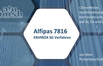 Das ENVIROX "SG"-Verfahren (Produkt: Alfipas 7816, Basis: Zirkon) ist ein chromfreies Korrosionsschutz-Verfahren zur Vorbehandlung von Stahl-, Zink- oder Aluminiumoberflächen vor dem Pulverbeschichten. Die Applikation erfolgt in geeigneten…