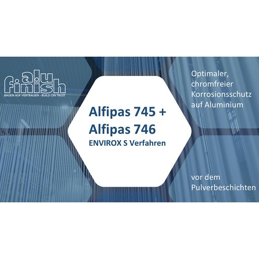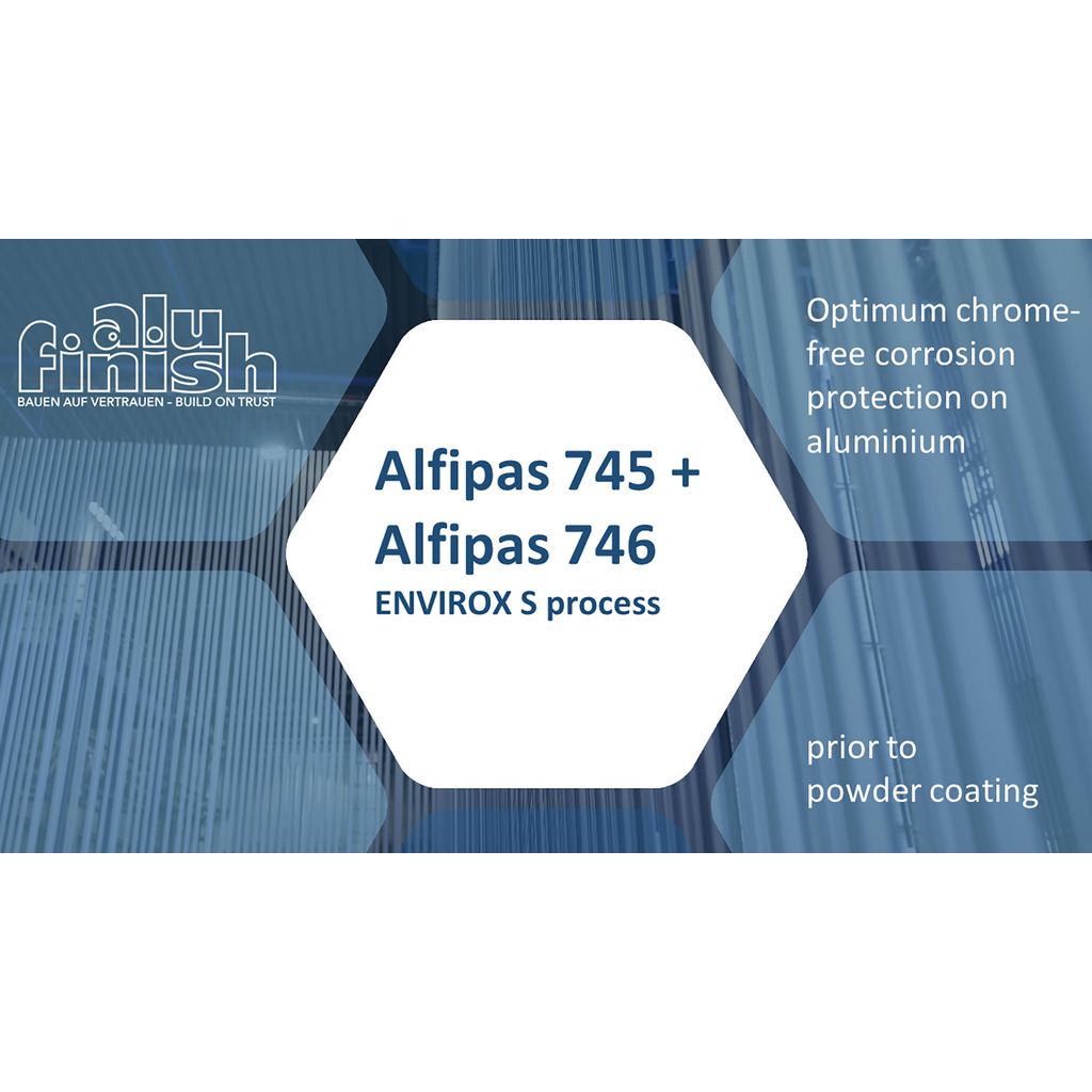 Das ENVIROX "S"-Verfahren (Produkte: Alfipas 745 und Alfipas 746, Basis: Titan) ist ein chromfreies 2 - Komponenten - Korrosionsschutz-Verfahren zur Vorbehandlung von Aluminium und Aluminiumlegierungen vor dem Pulverbeschichten. Die Anwendung erfolgt in geeigneten Industrieanlagen. "S" bedeutet "mit nachfolgender Spültechnik", d.h. ein Schlussspülen mit Wasser vor dem Lackierprozess ist für die so korrosionsgeschützte Oberfläche erforderlich.Mit Alfipas 745 - Alfipas 746 vorbehandelte Aluminiumoberflächen können in Verbindung mit geeigneten Pulverlacken im Innen- und Außenbereich (z.B. für Fassadenelemente) verwendet werden. Das chromfreie Produktkombination ist zur Vorbehandlung gemäß den Vorgaben der Qualitätsgemeinschaften GSB - International und Qualicoat zugelassen. Die von der GSB International durchgeführte 10-jährige Freibewitterungsprüfung in Hoek van Holland wurde ebenfalls erfolgreich absolviert.