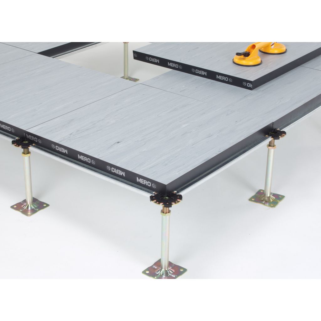 Der MERO Doppelboden ist ein standardisiertes mittels einer Unterkonstruktion aufgeständertes Bodensystem für den Innenausbau von Gebäuden. Dieser stellt unterhalb der Oberfläche einen Hohlraum zur flexiblen Nutzung und zur Aufnahme von Elektroinstallationen, Ver- und Entsorgungsleitungen aller Art, usw. zur Verfügung. Durch die Aufnahmemöglichkeit jeder einzelnen Platte ist der freie Zugang zum Bodenhohlraum an jeder Stelle möglich.Verwendungshinweise