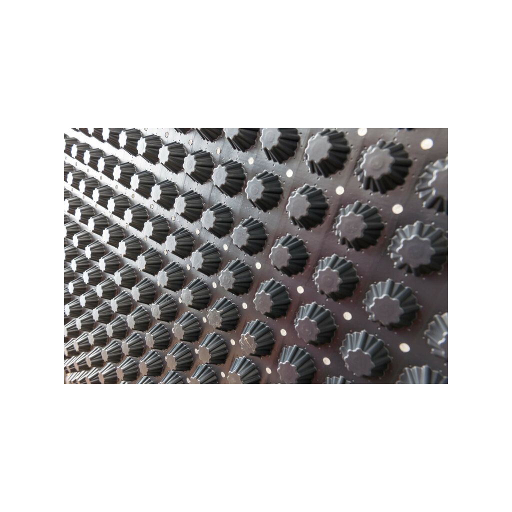Die Noppenbahn ist trinkwasserunbedenklich, chemikalienbeständig und unverrottbar im Erdreich.