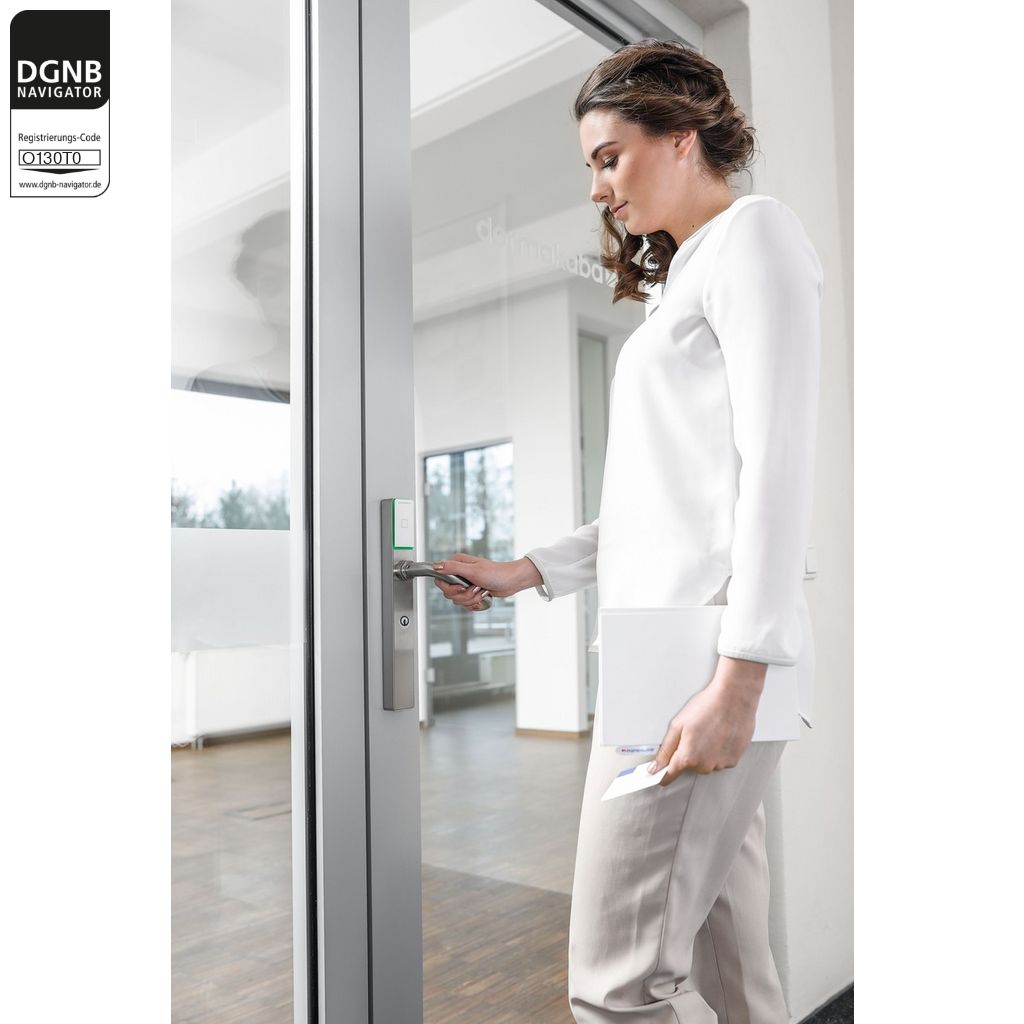 Der c-lever pro ist eine elektronische Beschlagslösung, es stehen Lösungen für den Einbruch- und Brandschutz, als auch für Flucht- und Rettungswege zur Verfügung. Zutrittsrechte können flexibel festgelegt und vergeben werden.Verwendungshinweise