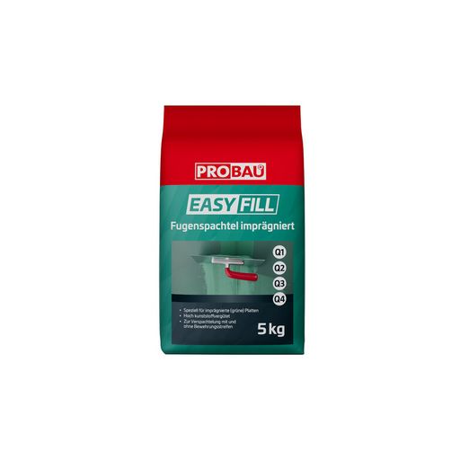 Der Easyfill Fugenspachtel imprägniert ist ein gipsgebundenes und hoch kunststoff-vergütetes Fugenspachtelmaterial für das Füllen von Fugen und das Fugen- und Oberflächenfinish von Wänden und Decken im Innenbereich. Speziell ist der Fugenspachtel für die sichere Fugenverspachtelung von grünen Gipskartonplatten also Platten für den Feuchtraum. Je nach Fugenausbildung kann es mit oder ohne Bewehrungsstreifen verarbeitet werden und eignet sich zur vollflächigen Nachspachtelung. Der Fugenspachtel lässt sich schnell und klumpenfrei anrühren und die Verarbeitungszeit beträgt ca. 40 Minuten.Vorteile Fugenspachtel