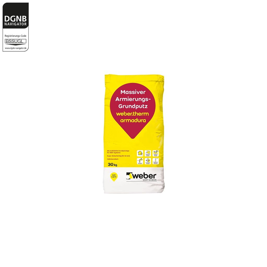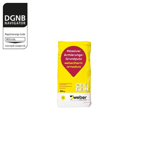 weber.therm armadura base ist ein werksmäßig hergestellter, mineralischer Trockenmörtel nach DIN EN 998-1.
