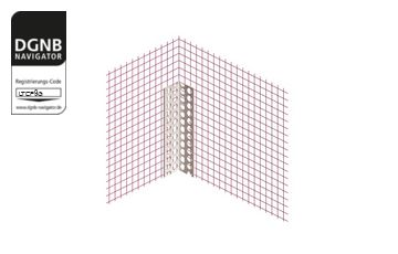 PVC-Eckwinkel mit aufgeklebtem VWS-Gewebe und Gewebeüberstand an einem Ende