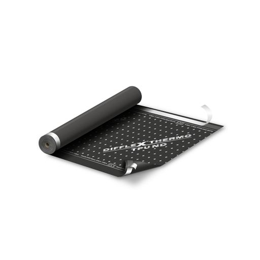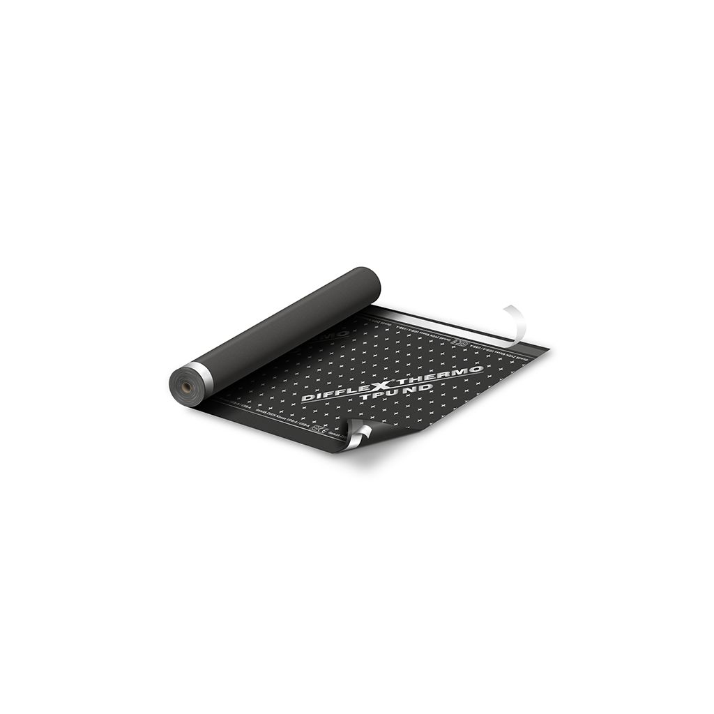 Diffusionsoffene Unterdeck- Unterspannbahn bestehend aus PES-Vlies mit einseitiger, monolithischer TPU – Copolymer Spezialbeschichtung mit rutschhemmenden und abdichtenden Eigenschaften. Mit doppelter Selbstklebekante (2-fach SK) ausgestattet.Rolle 50 m, Breite 1,50 m, schwarz