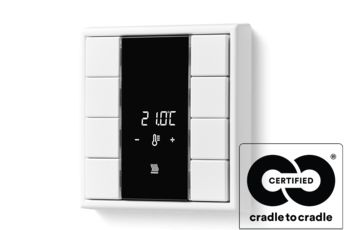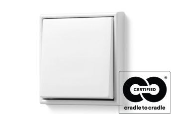 Durch intelligente Technik und die Verwendung kreislauffähiger Materialien tragen JUNG Produkte zur Gebäudeenergieeffizienz und Reduktion von CO2-Emissionen bei. Mit smarten Lösungen zur Gebäudesteuerung wie JUNG KNX können Energieverbräuche gemessen, analysiert und reduziert werden. Langlebigkeit, zeitloses Design, höchste Materialqualität und absolute Benutzerfreundlichkeit – das Zusammenspiel dieser Merkmale ermöglicht eine jahrzehntelange Nutzung der Produkte. Mit der Cradle-to-Cradle-Zertifizierung seiner meistgenutzten Einsätze und Schalterprogramme geht JUNG den Weg der Kreislaufwirtschaft. Cradle to Cradle Certified® ist der internationale Standard für nachhaltige, kreislauffähige und verantwortungsvolle Produkte. Für eine Zertifizierung wird die gesamte Wertschöpfungskette geprüft, um sicherzustellen, dass Produkte in ihrem vollständigen Produktlebenszyklus keinen negativen Einfluss auf Menschen und Umwelt haben. Die Zertifizierung C2C Material Health belegt, dass bei der Herstellung der JUNG Produkte keine umweltschädlichen Chemikalien verwendet werden. Alle zertifizierten Serien werden unter Einsatz erneuerbarer Energien hergestellt, sind sortenrein trennbar und können somit dem Recyclingkreislauf zugeführt werden. Als bisher einzigem Hersteller weltweit ist dem Unternehmen auch die Zertifizierung kompletter KNX Module gelungen. Zusätzlich setzt JUNG seit vielen Jahren auf den Einsatz von recycelten Kunststoffen in der Produktion. Die Kunststoff-Designabdeckungen und -rahmen der Schalterprogramme A CREATION, A 550 und A FLOW in Anthrazit matt bestehen zu 95 % aus Rezyklat nach DIN EN ISO 14021, das durch die Aufbereitung und Wiederverwertung von Kunststoffabfällen gewonnen wird.