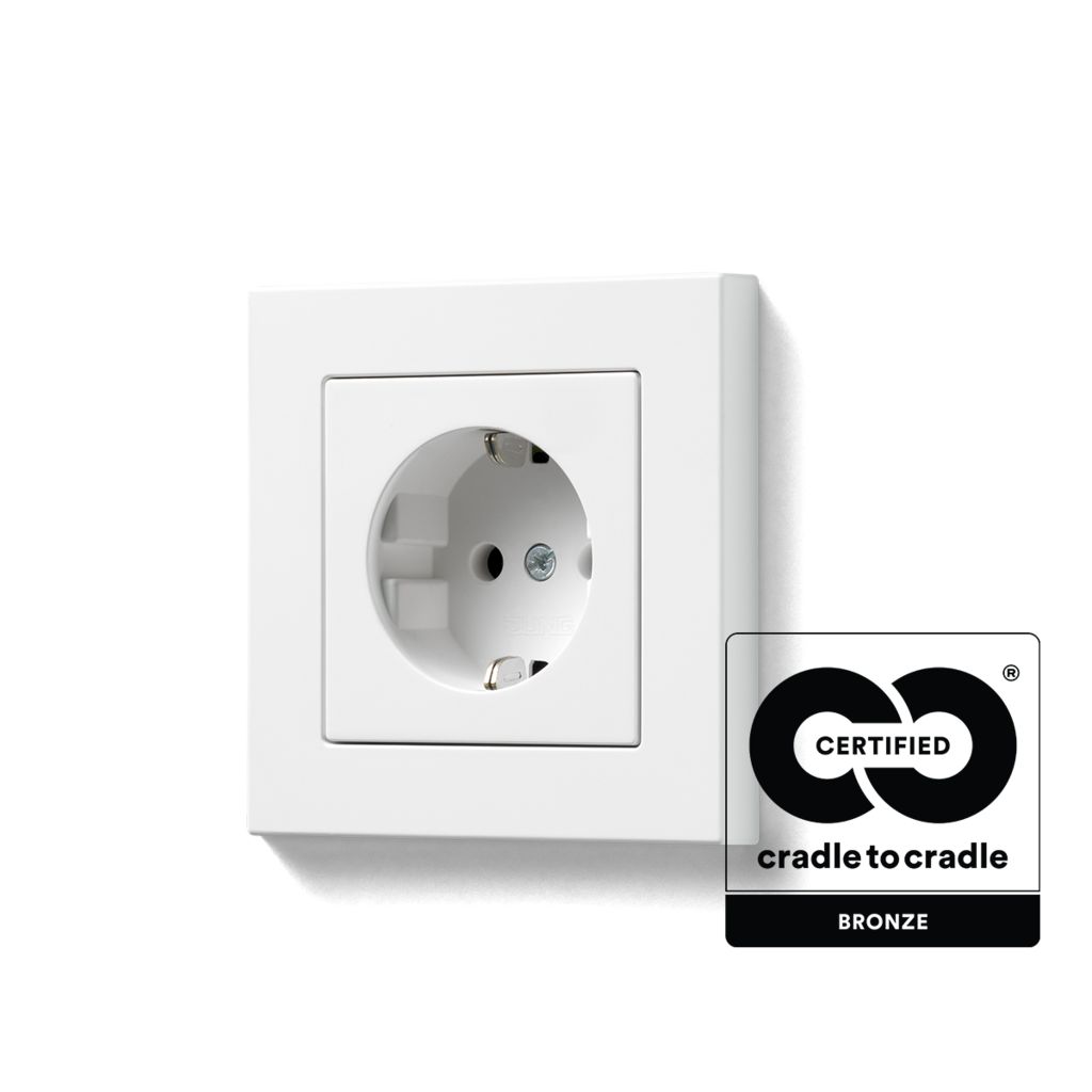 JUNG Steckdosen bieten zahlreiche Mehrwerte. Mit „Safety Plus“ reduzieren sie das Risiko von Stromunfällen. Ausgestattet mit zusätzlichem Überspannungsschutz verhindern sie Schäden an Elektrogeräten. Als Steckdose mit integriertem USB-Ladegerät sind sie besonders vielseitig einsetzbar. JUNG Steckdosen werden in Deutschland hergestellt und zu 100 Prozent auf Qualität geprüft. Die Steckdosen der Programme LS 990, AS 500, A 550, A FLOW und A CREATION in der Farbe Alpinweiß wurden mit den Zertifikaten Cradle to Cradle (C2C) und Material Health ausgezeichnet. Belegt durch die Zertifizierung C2C Material Health werden bei der Produktion keine umweltschädlichen Chemikalien eingesetzt. Alle zertifizierten JUNG Programme werden unter Einsatz von erneuerbarer Energie produziert, sind sortenrein trennbar und können so dem Recycling-Kreislauf zugeführt werden.Bezug zum DGNB System