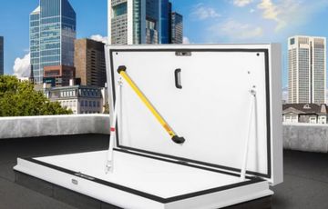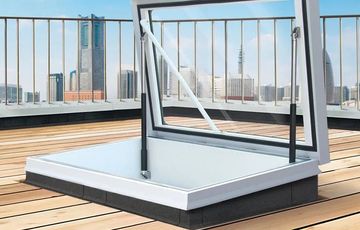 Der RHTEP-Dachausstieg ist eine thermisch vollständig getrennte Dachluke mit einem Dämmwert von Uw ≤ 0,198 W/(m².K) für die gesamte Dachausstiegskonstruktion. Die Dachluke bietet einen sicheren und praktischen Dachzugang.