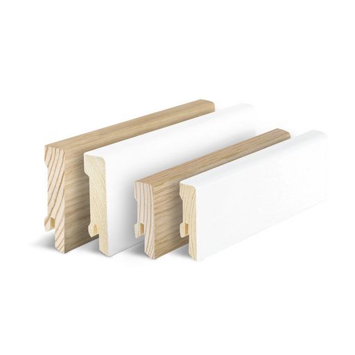Die weiß lackierten Massivholz-Sockelleisten von Hocotimber werden aus hochwertigem, 100% FSC®-zertifiziertem Massivholz gefertigt und sind für den anspruchsvollen Innenausbau konzipiert.