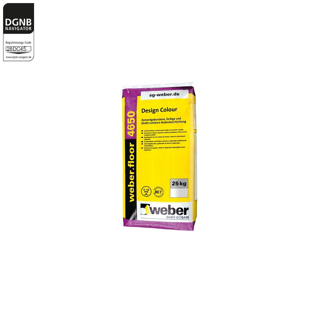 weber.floor 4650 DesignColour ist eine werksmäßig hergestellte, zementgebundene, polymermodifizierte und eingefärbte Beschichtung.