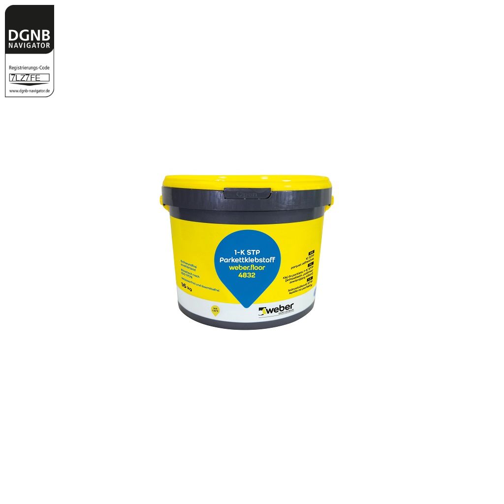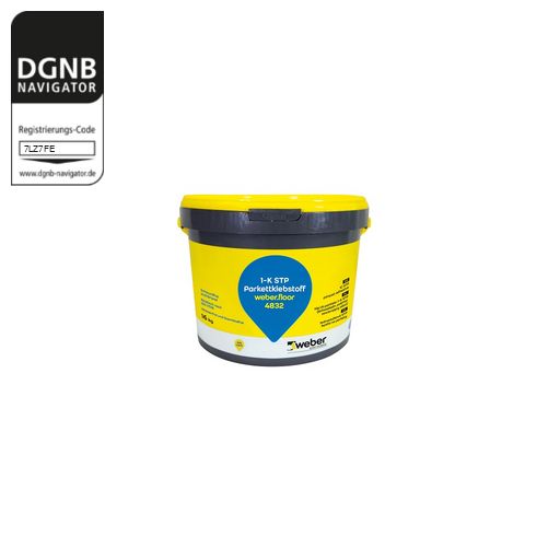 weber.floor 4832 1-K STP Parkettklebstoff wird für die Verlegung von normgerechtem Hochkantlamellenparkett ab 16 mm, Massivholz (Lamparkett mit Dicken-Breitenverhältnis von < 1:5), Stabparkett, Massivdielen ≥ 15 mm mit Dicken- Breitenverhältnis von max. 1 zu 7 und Mehrschichtparkett verwendet. Anwendung im Innenbereich.Bezug zum DGNB System