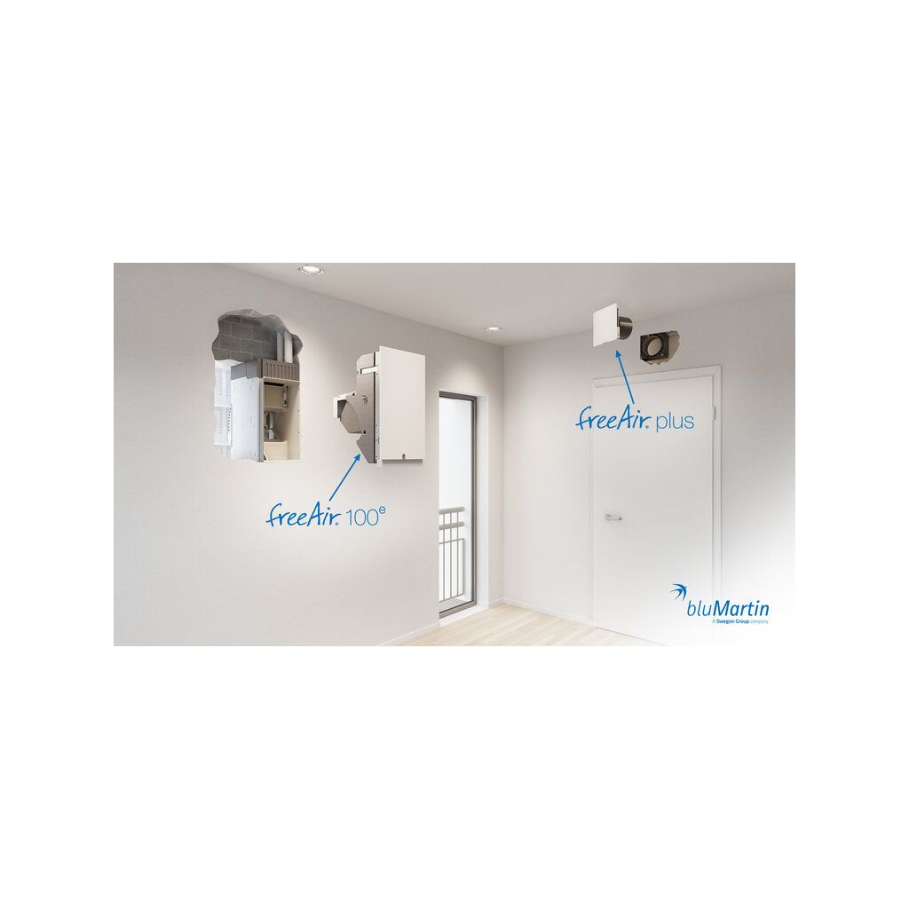 Bedarfsgeführtes Lüftungsgerät mit Gegenstrom-Wärmetauscher und Anschlussmöglichkeit für weitere Räume (Abluft/Zuluft). Technische Daten: Volumenstrom 8-100 m3/h, 87 % Wärmebereitstellungsgrad nach PHI und EN 13141-8, Steuerung über 8 Sensoren: - 1…