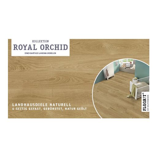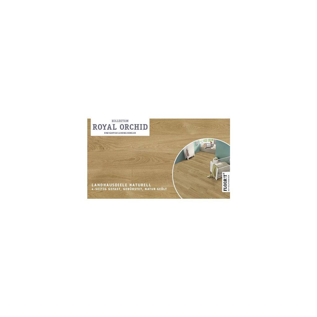 Royal Orchid verbindet natürliche Ästhetik mit vielfältigen Sortierungen von Naturell bis Super Rustikal. Hochwertige Oberflächen – naturgeölt, transparent geölt mit SafeTop Technology, mattlackiert oder geräuchert naturgeölt – sowie gebürstete Ausführungen unterstreichen die authentische Holzstruktur.Die Kollektion ist in drei Dielenformaten erhältlich, darunter eine schlanke Project Line für Renovierungen. Alle Sortierungen, Oberflächen und Formate sind frei kombinierbar und ermöglichen eine individuelle Zusammenstellung nach Wunsch.