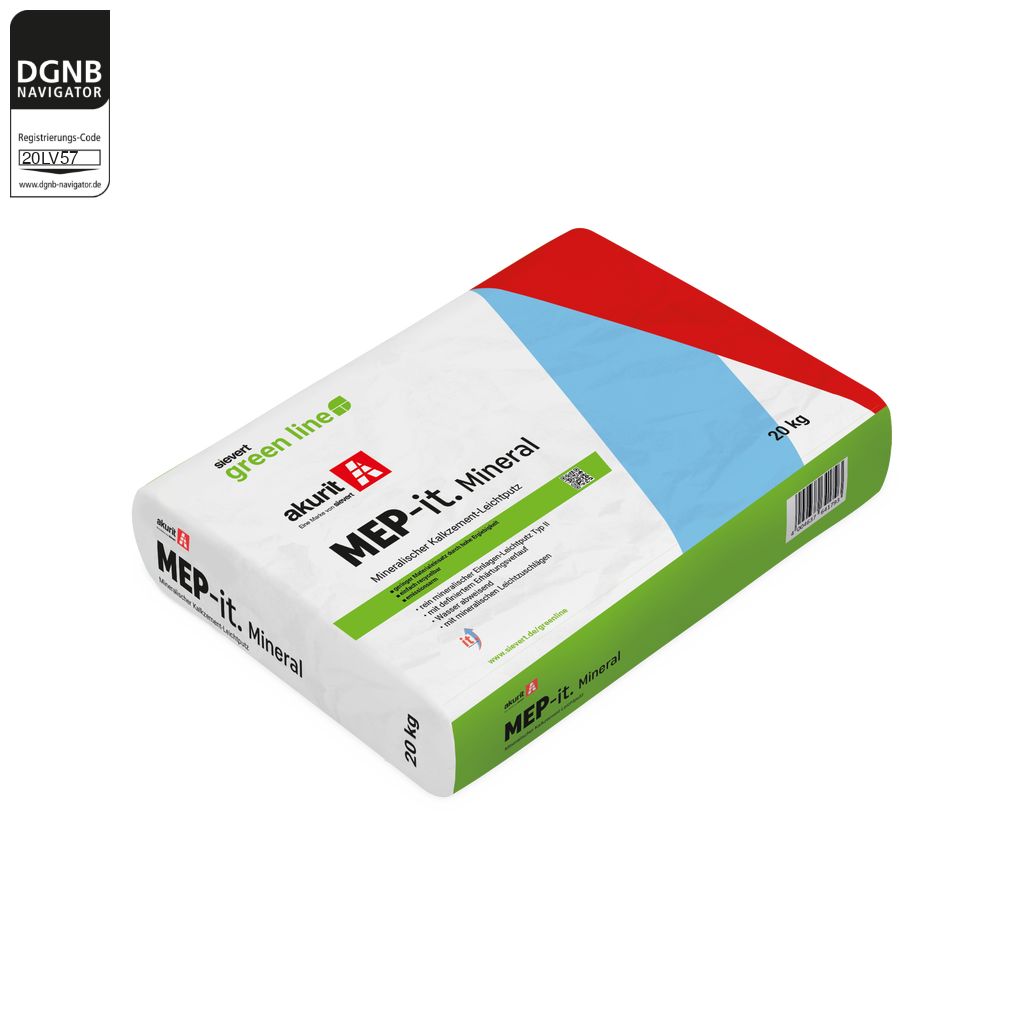 akurit MEP-it. Mineral ist ein hoch ergiebiger, mineralischer Kalkzementputz zum Verputzen von hochwärmedämmenden Mauerwerk im Innen- und Außenbereich.Bezug zum DGNB System