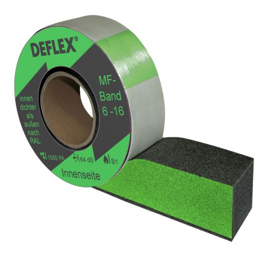 3-Ebenen-Band für alle Anschlussfugen bei der Fenstermontage, schützt die Anschlussfuge vor aussen- und raumseitigen Belastungen nach RAL, erfüllt alle Anforderungen der EnEV in Bezug auf den Fensterbau. Es ist schlagregensicher und luftdicht. Fugenschalldämmung mit nur einem Produkt. Die sichere Lösung für Alu- und Kunststofffenster. Entspricht der DIN 18542-2009 Beanspruchungsgruppe BG-1 und erfüllt die Brandschutzklasse B1 , Schlagregendicht bis 1050 Pa nach EN 1027, luftdicht, witterungsbeständig, gute Schalldämmung -62dB, witterungsunabhängige MontageVerwendungshinweise