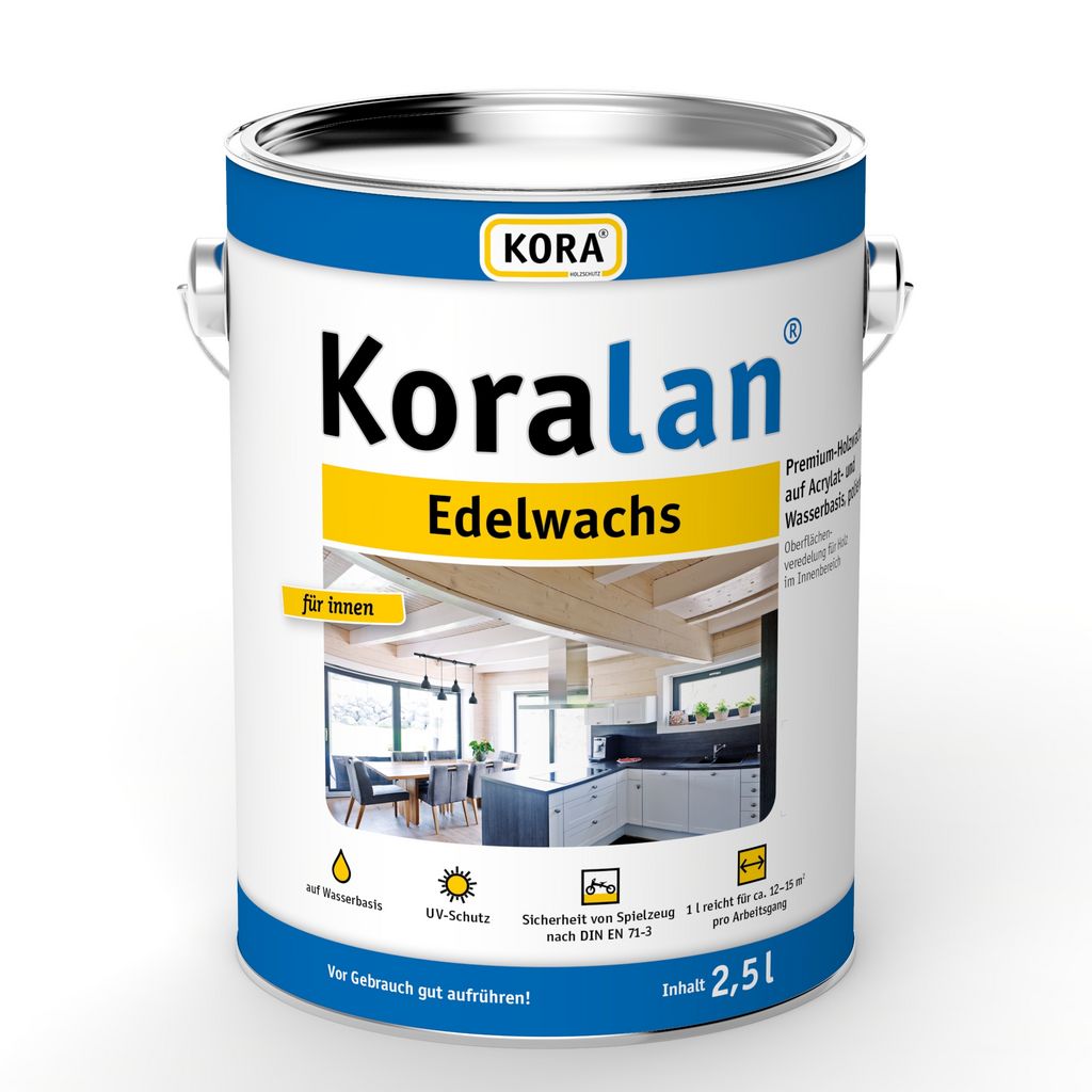 Premium-Holzwachs auf Wasserbasis, polierbar.Schützt Holzoberflächen vor Flecken, Schmutz und Staub und vermindert deutlich die Holzvergilbung durch Verwendung UV-stabiler, hochlichtechter Pigmente sowie eines speziellen UV-Absorbers. Koralan Edelwachs enthält hydrophobierende und schützende Wachse. Zur dekorativen Oberflächenveredelung von Holzdecken, Wandverkleidungen, Vertäfelungen, Profilhölzern u.v.m.