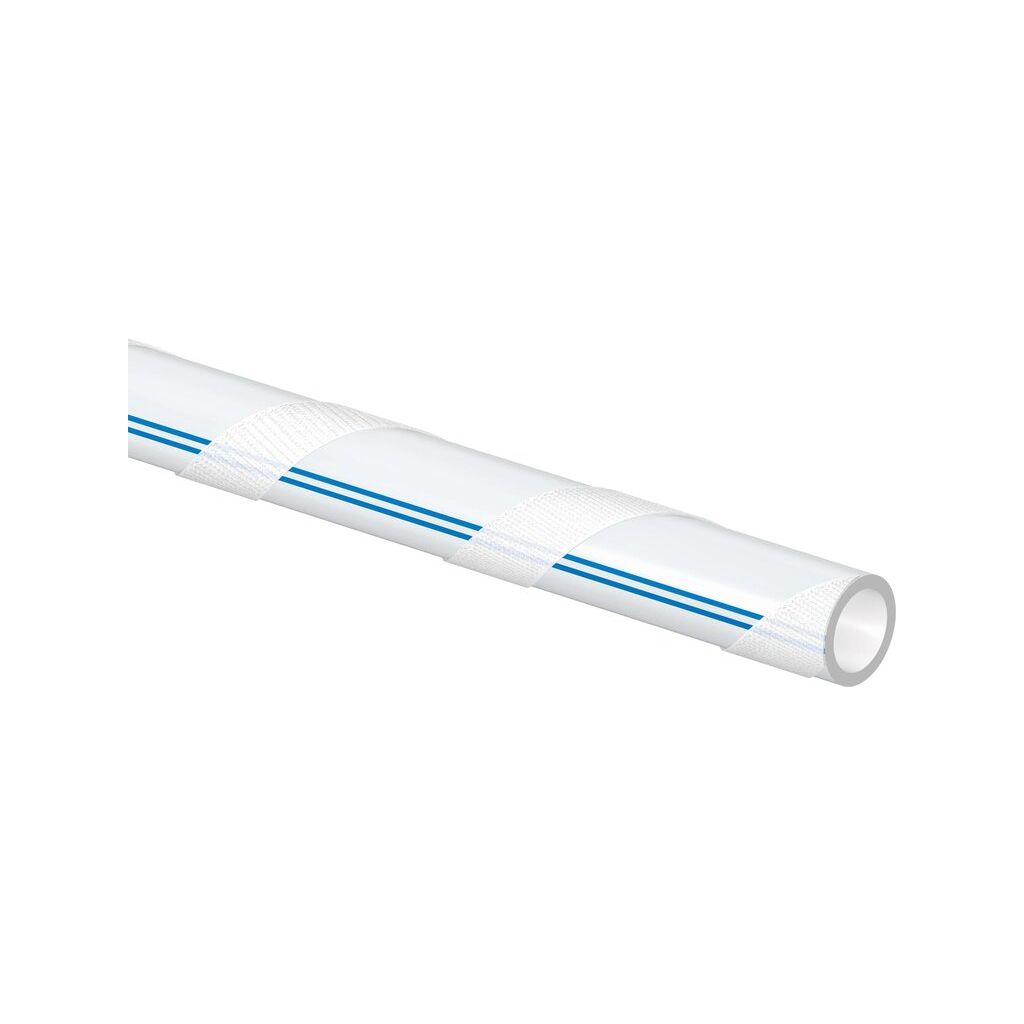 Rohr aus vernetztem Polyethylen (PE-Xa) gem. DIN EN ISO 15875 Teil 1, 100% basierend auf biobasiertem PEX (Massenbilanz), zertifiziert durch ISCC, sauerstoffdiffusionsdicht nach DIN 4726, 5 Schichten, außen weiße PE - Schicht zum Schutz vor…