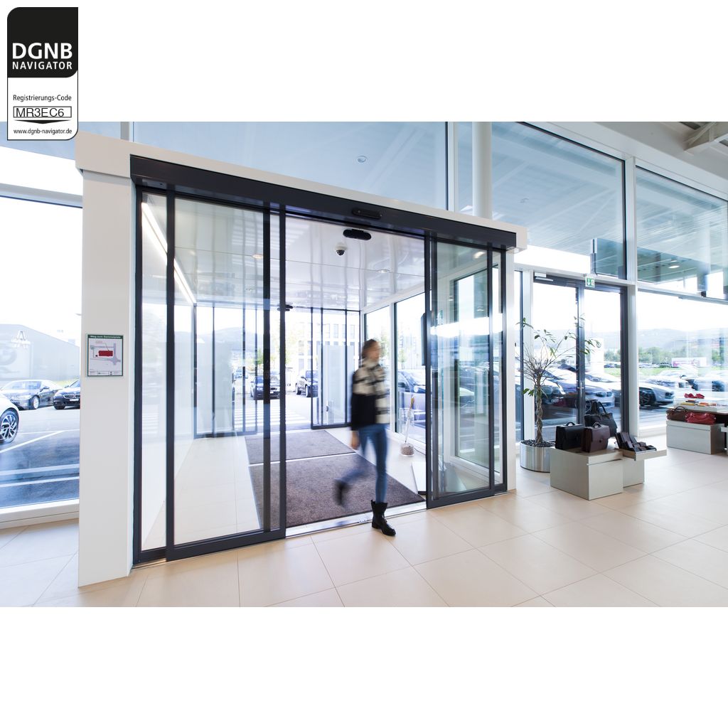 Die automatischen Schiebetürsysteme werden auf die individuellen Maße der Projekte auftragsbezogen gefertigt.Bezug zum DGNB System
