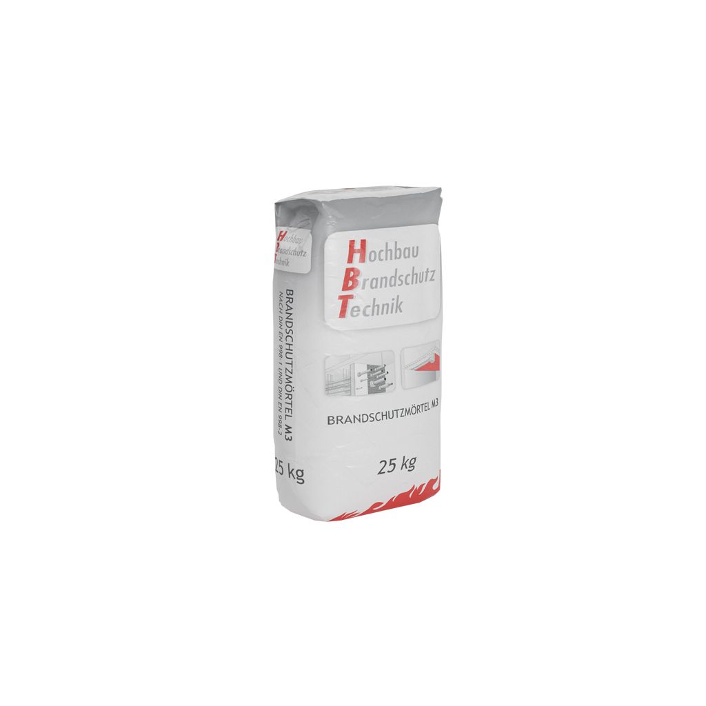 Der HBT Brandschutzmörtel M3 ist ein werkseitig gemischter, mineralischer Trockenmörtel auf Basis getrockneter Sande und mineralischer Bindemittel. Er wird zum brandschutztechnischen Verschluss von Öffnungen in Decken und Wänden eingesetzt. Schottmörtel für Brandschutzklappen, Rohrdurchführungen und LAR-Lösungen in Massiv- und Leichtbauwänden. Fugenspalten an und zwischen Brandschutzklappen aller gängigen Größen und Formen. Weitere Verwendung findet der Brandschutzmörtel als Zargenvergussmörtel, Schlitzmörtel, Ankertaschenmörtel und Lagefugenmörtel für Holz- und MassivbauteileVerwendungshinweise