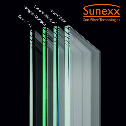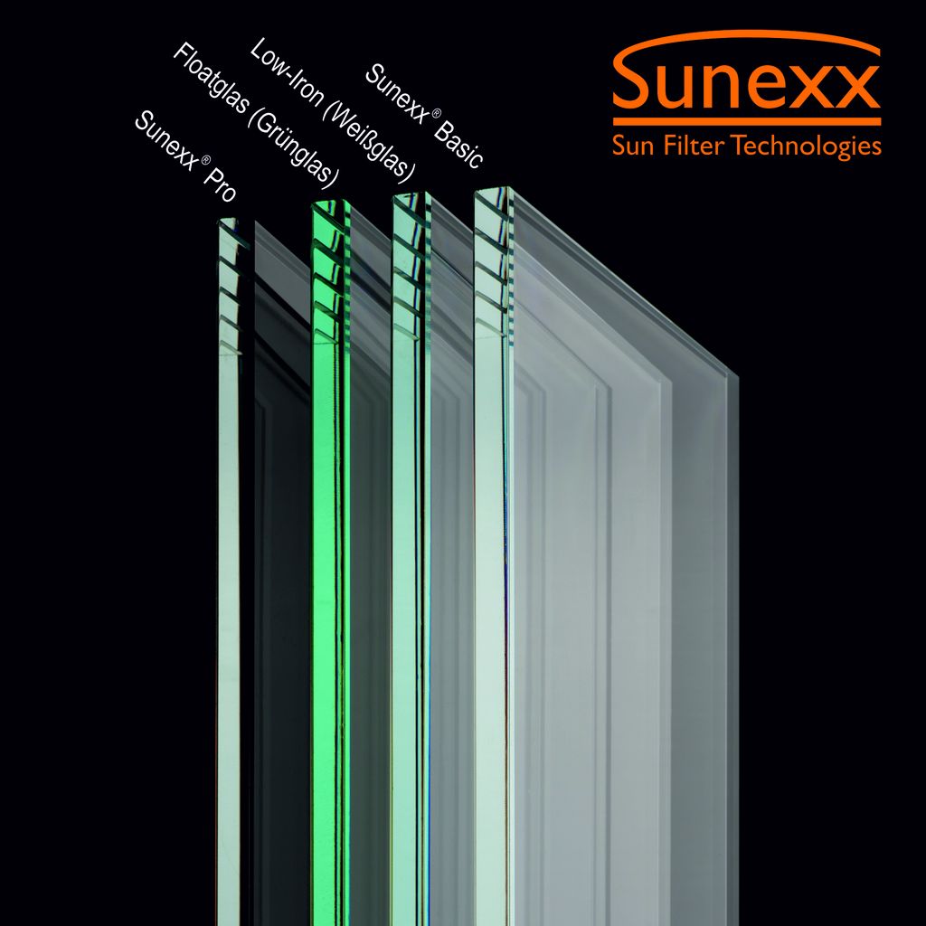 Sunexx®-Verglasungen haben dieselben technischen Eigenschaften wie „normales“ Floatglas bzw. „normales“ Weißglas. Das Spezialglas unterscheidet sich nur in seiner einzigartigen Brillanz, hohen Lichttransmission und höchsten Qualitätsansprüchen in der Herstellung und in den Rohstoffen und deren Reinheit. Die vielseitigen Gestaltungsmöglichkeiten ermöglichen eine weitere Veredelung zu Einscheibensicherheitsglas, Verbundsicherheitsglas, Verbundglas sowie Mehrscheiben-Isoliergläser. Bestehende Verglasung kann mühelos durch eine maßgeschneiderte Sunexx-Verglasung ersetzt werden.