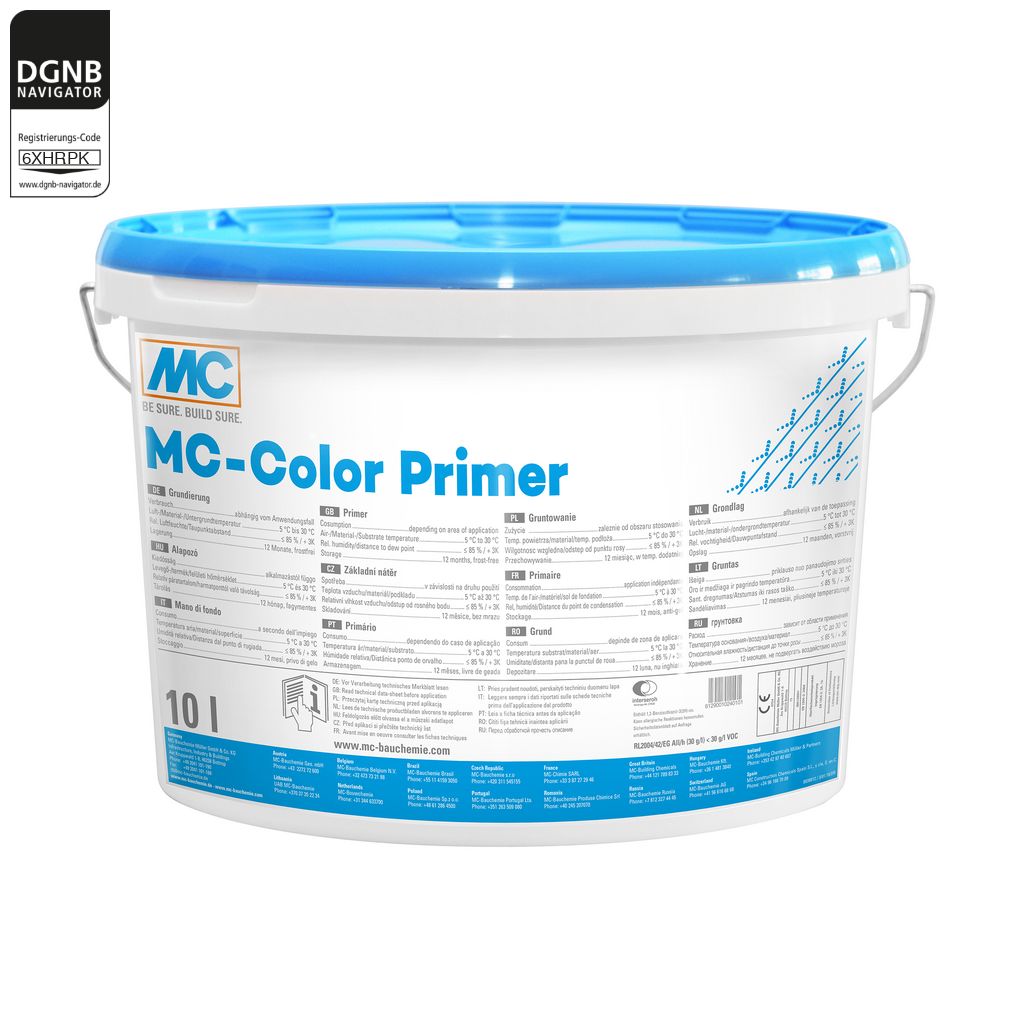 Grundierung für mineralische Untergründe, anwendbar auf alkalischen, neutralen Untergründen und auf Altanstrichen, untergrundverfestigendBezug zum DGNB System