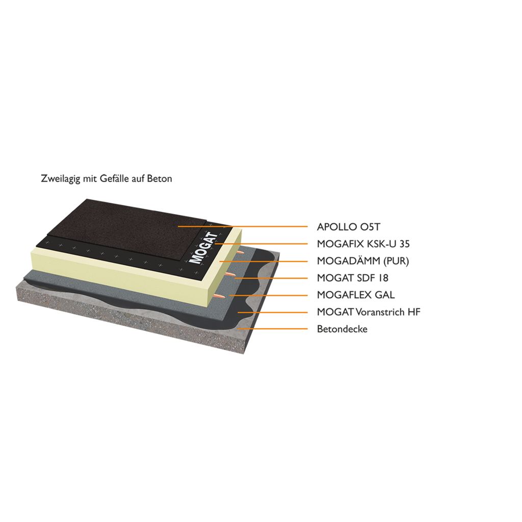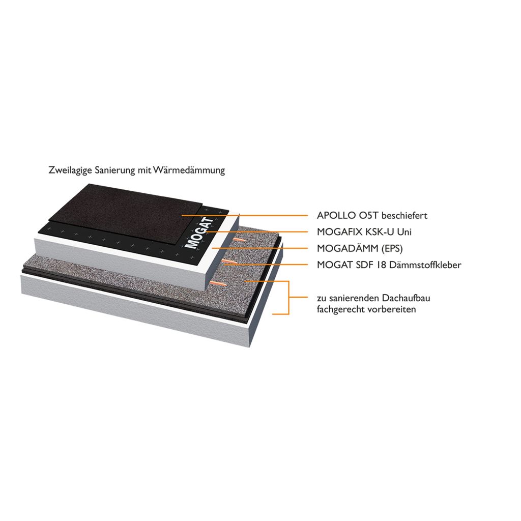 APOLLO O5T ist die Oberlage für langlebige Hochwert-Dachsysteme, die die Anforderungen des Klimawandels und der Wirtschaftlichkeit über die Norm erfüllen. Auch bei der Sanierung bietet APOLLO O5T im zweilagigen MOGAT-Sanierungssystem als Oberlage eine zuverlässige, langlebige Lösung.Bezug zum DGNB System