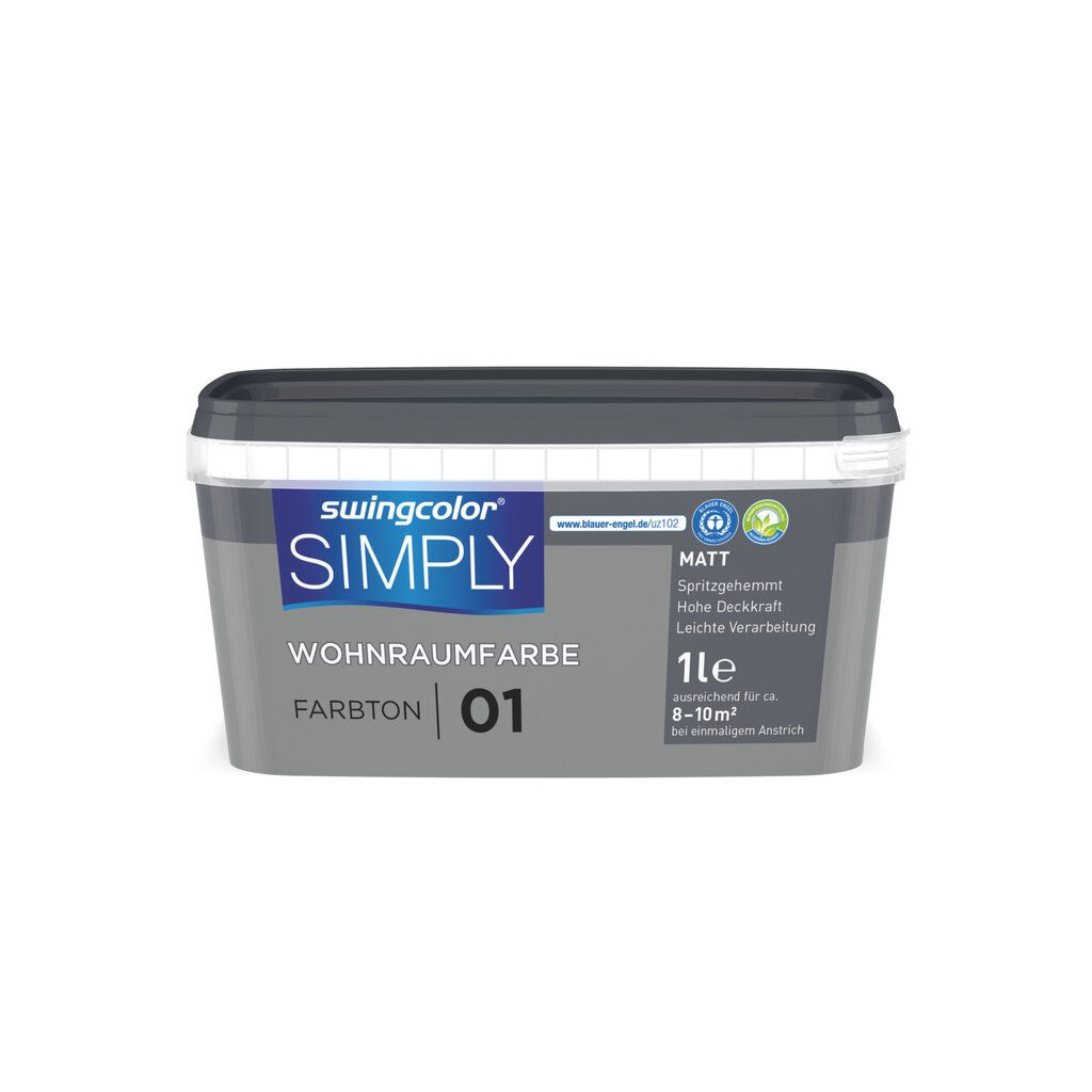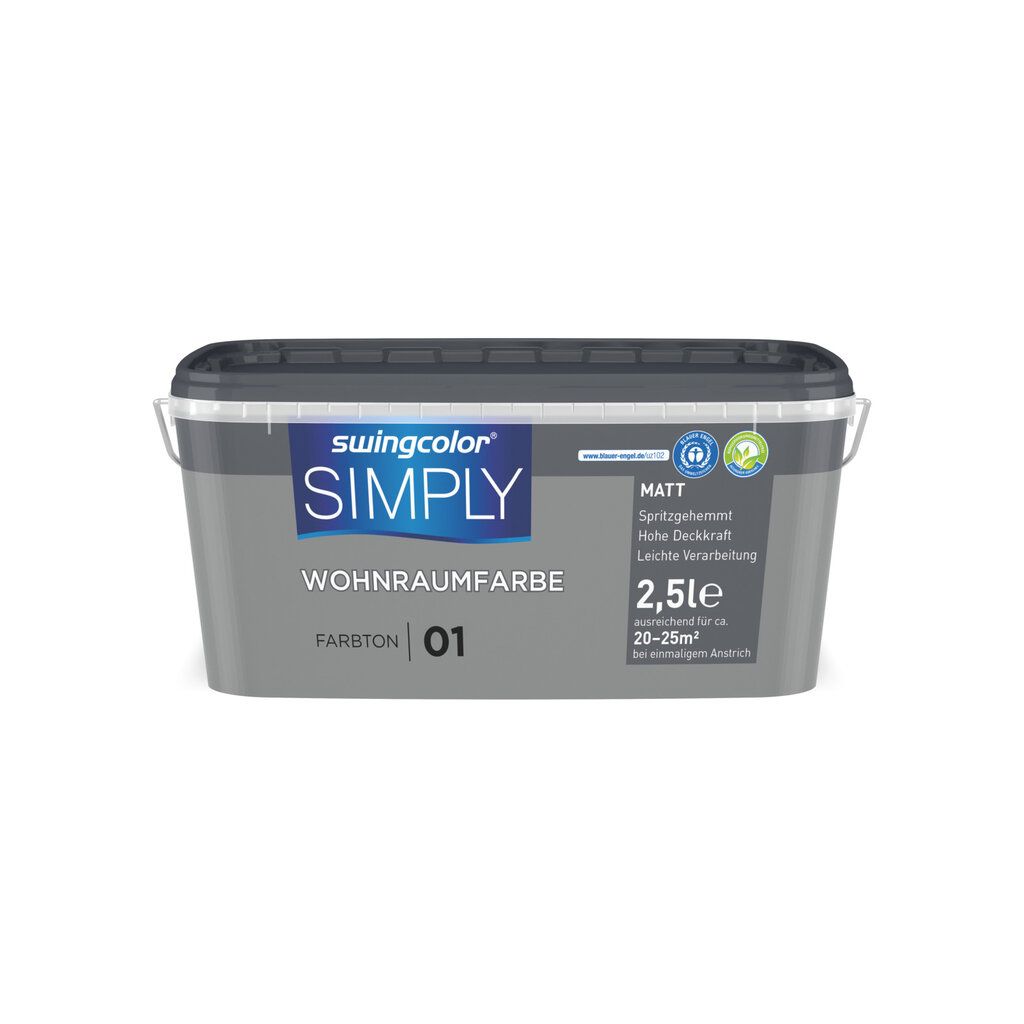 swingcolor® Simply ist eine konservierungsmittel-, lösemittel- und weichmacherfreie fertig abgetönte, hochwertige Dispersionsfarbe mit einer speziellen Rezeptur für höchste Wohnansprüche. Durch die besondere Rezeptur ist sie extra spritzgehemmt und geeignet für alle Wohnräume mit normaler Beanspruchung wie z.B. Wohn- und Schlafzimmer. Bei swingcolor® Simply ist mit mittels des Anti-Schreib-Effekt die typische Anfälligkeit intensiver Farbtöne für weiße Kratz- und Abriebspuren durch die leicht raue Oberfläche deutlich reduziert.Kontakt zum Hersteller