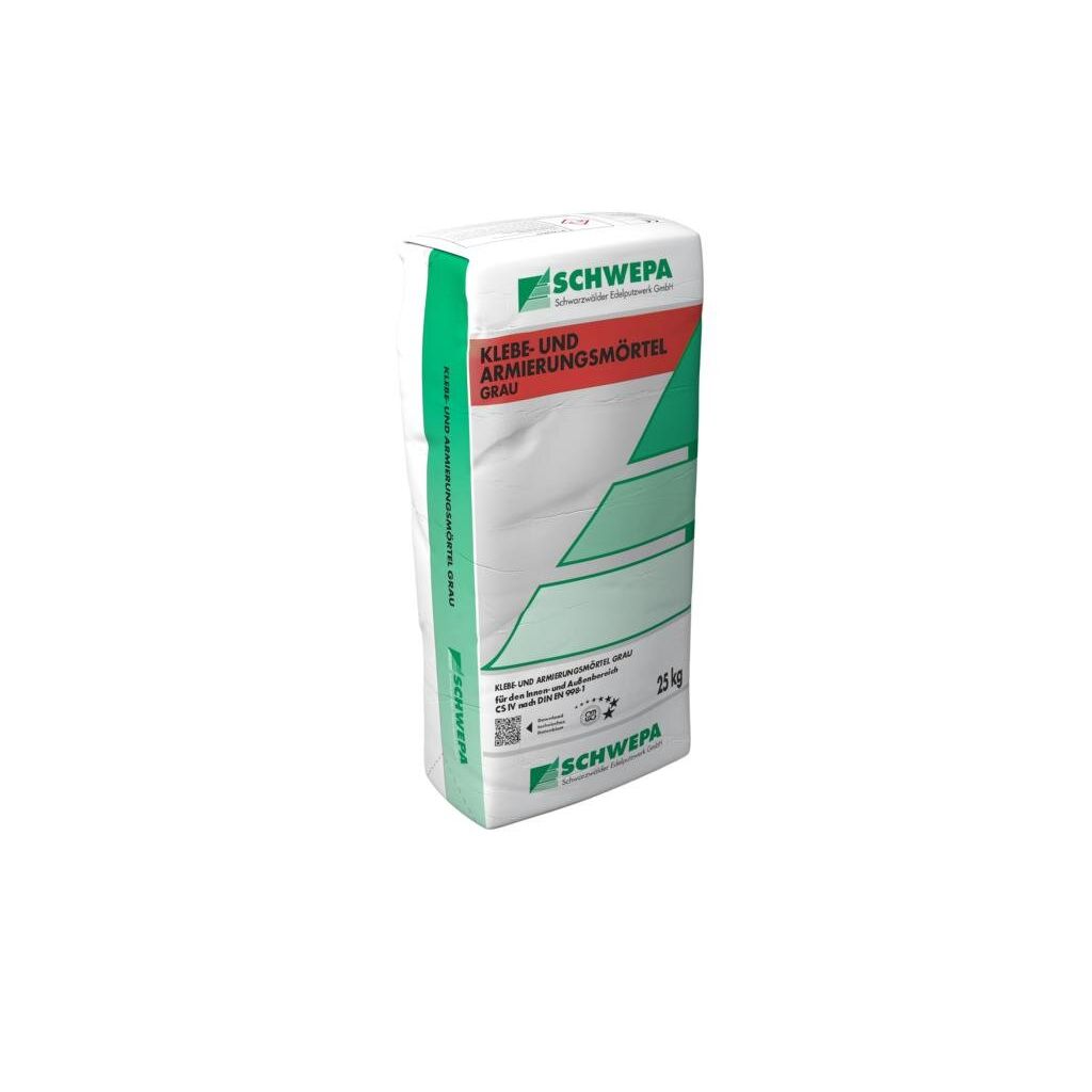 SCHWEPA Klebe- und Armierungsmörtel grau oder weiß eignet sich zum Kleben von organischen (z. B. Styropor) und mineralischen Dämmplatten (z. B. Mineralwolledämmplatten) sowie zum Einbetten von Schwepa Armierungsgewebe (F oder M) auf Dämmplatten, speziell für SCHWEPA Wärmedämm-Verbundsysteme (WDVS) gemäß Zulassung. Weiterhin eignet sich SCHWEPA Klebe- und Armierungsmörtel grau -faserarmiert- zum Überarbeiten von tragfähigen bzw. entsprechend vorbehandelten Altputzen, gerissenen Putzfassaden oder als Putzhaftbrücke auf glatten Betonflächen,geriffelten und rauen XPS-R-Platten (Styrodur) etc. für den nachfolgenden Auftrag von Kalk-, Kalkzement- oder Zementputzen.