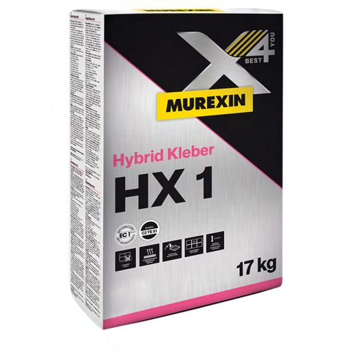 Hybrid Kleber HX 1 ist ein pulverförmiger, hydraulisch abbindender flexibler Klebemörtel mit perfekt abgestimmten Verarbeitungseigenschaften. Im Innen- und Außenbereich zum Verkleben von allen keramischen Materialien, großformatigen Platten und nicht durchscheinenden, feuchtigkeitsunempfindlichen Natursteinen sowie zum Ausgleichen für Wand und Boden. Auf allen bauüblichen Untergründen von 2 bis 20 mm Schichtstärke. Der Kleber besticht durch seine leichtgängige Verarbeitung bei extrem hoher Standfestigkeit bzw. keinem Abrutschen. Systemklebemörtel gemäß abP für die Verbundabdichtungen WD-1K, PU 500, 2 KS, PSM 1K, 1 KS, AE 100, Uniplatte.Verwendungshinweise