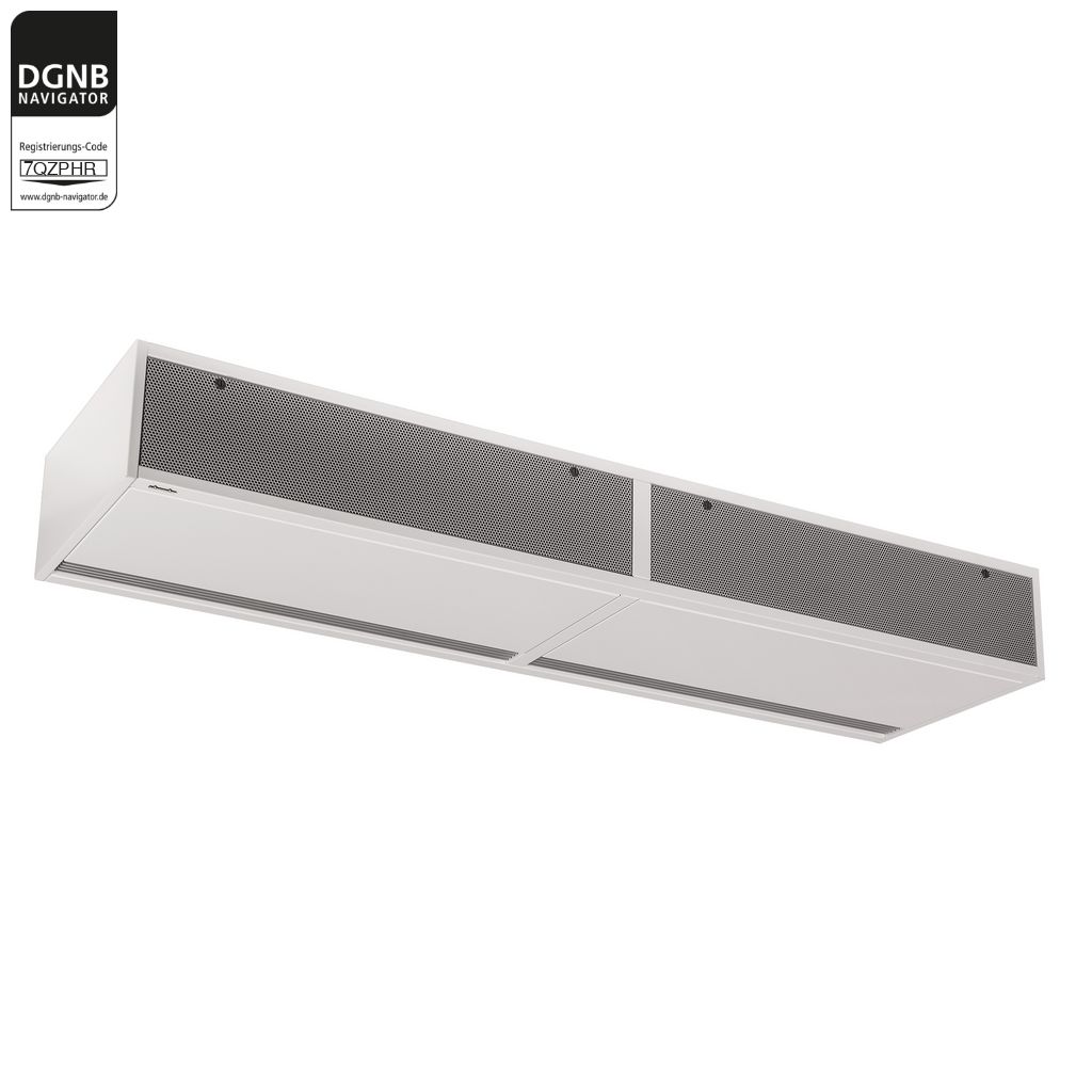 Der Türluftschleier UniLine sorgt für eine effektive Kaltluftabschirmung und damit für ein angenehmes Raumklima. Während der Heizperiode sorgt der Abschirmungseffekt für ein angenehmes Raumklima, wenn die Türen von Geschäften geöffnet sind. Kunden genießen einen angenehmen Eintritt in das Geschäft. Dank der Verwendung von EC-Technologie verfügt der UniLine-Türluftschleier über das energieeffizienteste Antriebskonzept und kann überall dort eingesetzt werden, wo langfristig Energie eingespart werden muss. Die Luft wird von leistungsstarken Radialventilatoren durch den Filter und den hochleistungsfähigen Kupfer/Aluminium-Wärmetauscher gesaugt. Das Umlenkgitter im Luftaustritt sorgt für minimale Turbulenzen und eine gleichmäßige Abgabe der erwärmten Luft. Türluftschleier werden in der Regel gemäß VDI 2082 dimensioniert. Die UniLine-Reihe ist ausschließlich mit ErP-konformen Ventilatoren ausgestattet.Verwendungshinweise