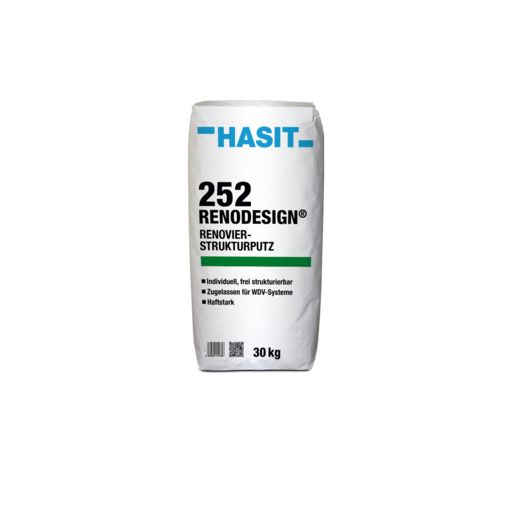 HASIT 252 RENODESIGN® ist ein weißer, mineralischer Oberputz welcher auf eine Vielzahl von Untergründen universell einsetzbar ist. Universell einsetzbar auf bauüblichen, tragfähigen Untergründe wie z.B. zugelassene WDVSysteme, Altputze und zur Putzüberarbeitung in der Denkmalpflege. Für Überarbeitung von tragfähigen Altputzen, auch in der Denkmalpflege.• Hervorragende maschinelle Verarbeitung