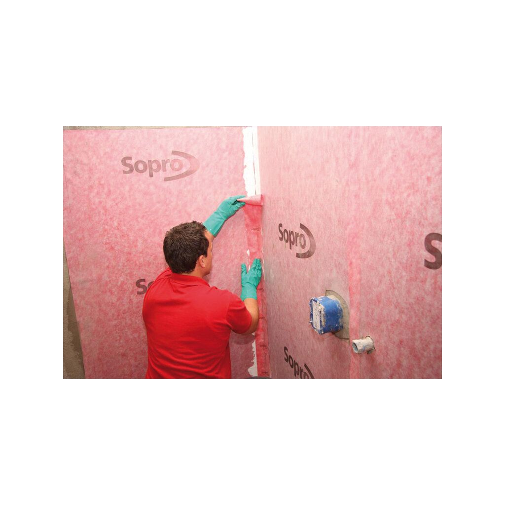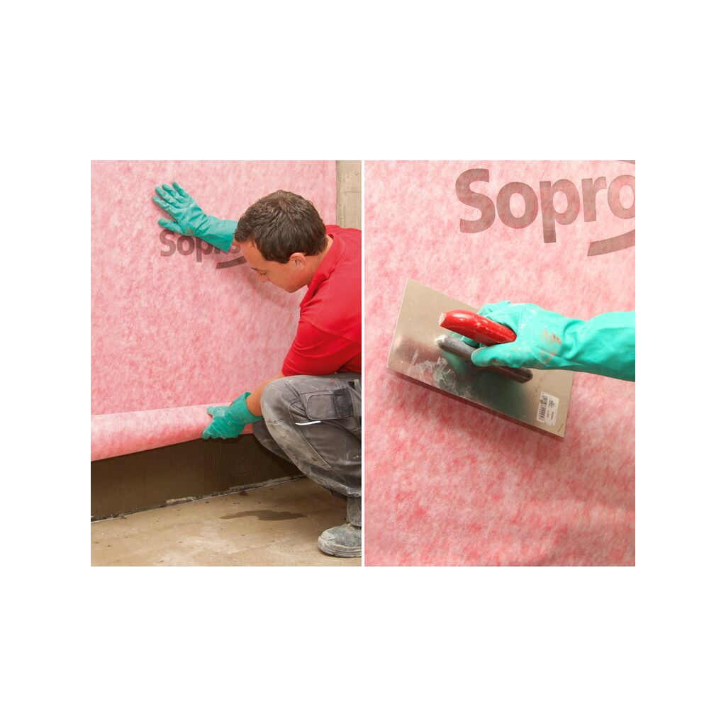 Dünnschichtige, wasserundurchlässige und rissüberbrückende Abdichtungs- und Entkopplungsbahn mit Rezyklat-Anteilen im Material. Zum sicheren, schnellen und flexiblen Abdichten und Entkoppeln unter keramischen Fliesen und Platten gemäß DIN 18534 Teil 5.Innen, Wand und Boden