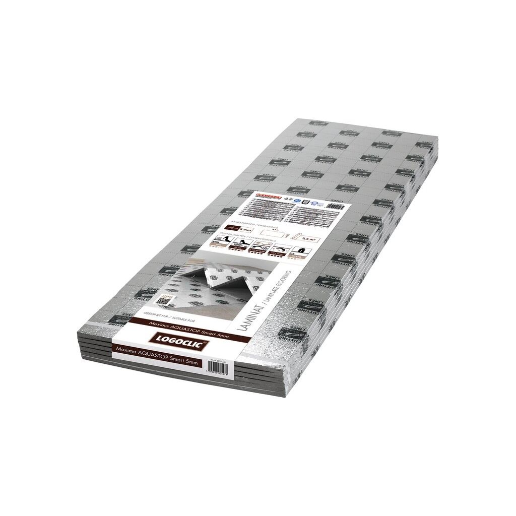 LOGOCLIC Maxima Aqua Stop Smart ist eine XPS-Dämmunterlage inklusive Aluminiumbeschichtung, welche den akustischen Komfort auf Grund der sehr hohen Trittschalldämmwerte deutlich verbessert. Hervorragende Werte gewährleisten eine Isolierung des Bodens vor Kälte. Punktuelle Unebenheiten von bis 4 mm werden sehr gut ausgeglichen. Durch das handliche Format ist die Faltmatte einfach zu transportieren und zu verlegen. Die Trittschalldämmung eignet sich für den Einsatz von schwimmend verlegtem Fertigparkett-, Kork- und Laminatfußböden. Das Kombiprodukt ist bereits mit einer Aquastop Dampfsperre sowie Klebeband ausgestattet.Verlegefreundlich durch Schnittlinien