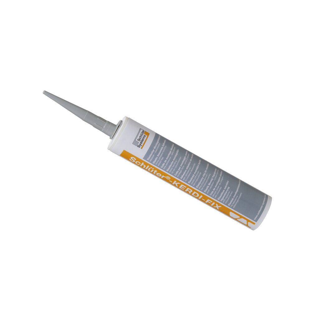 Schlüter-KERDI-FIX ist ein elastischer Montagekleber auf der Basis eines MS-Polymer.Er eignet sich zum Herstellen von dichten Anschlüssen der Verbundabdichtung Schlüter-KERDI zu anderen Bauteilen, wie Balkon- und Terrassentüren, Fensterelementen, Blechverwahrungen oder Schlüter-BARA Randprofilen. Ebenso ist KERDI-FIX sehr gut geeignet, um Schlüter-KERDI-BOARD Platten aneinander oder an Einbauteilen zu verkleben. Weiterhin kann KERDI-FIX auch zum Verkleben einer Vielzahl anderer Materialien verwendet werden.